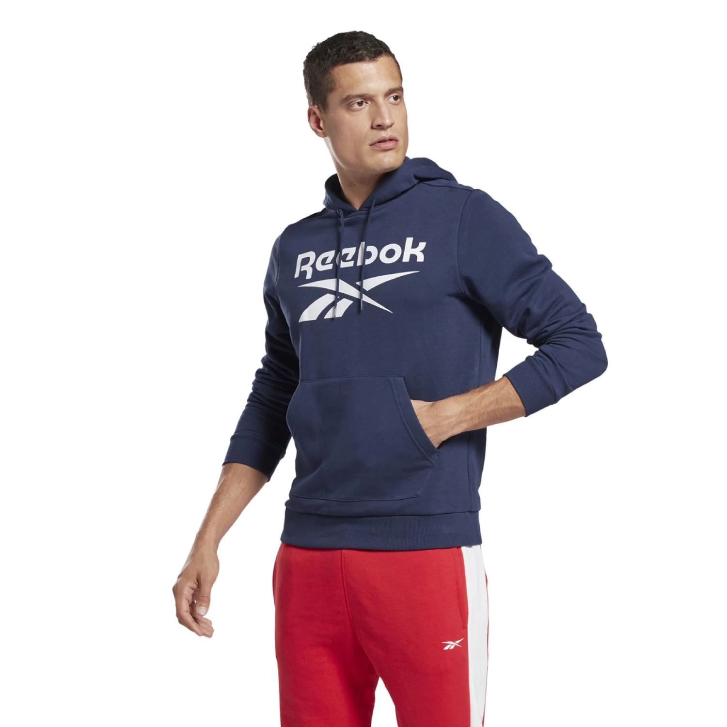 Affiche ta passion pour Reebok partout où tu passes. Ce hoodie pour homme en molleton de coton mélangé apporte un grand confort à tes journées sportives. La capuche assure une couvrance idéale pour te protéger du vent. Un imposant logo Vector ressort joliment à l’avant.