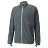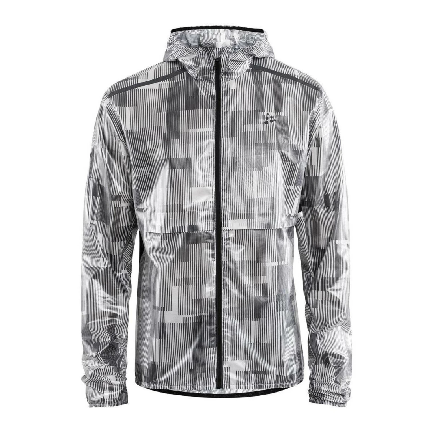 Veste de running avec membrane coupe-vent et déperlante sur le devant. Perforations dans le dos pour une ventilation renforcée. Capuche ajustée. Mesh sur les côtés et sous les bras pour l’évacuation de la transpiration. Finitions avec bande élastique aux manches, sur le bas et au niveau de la capuche.
